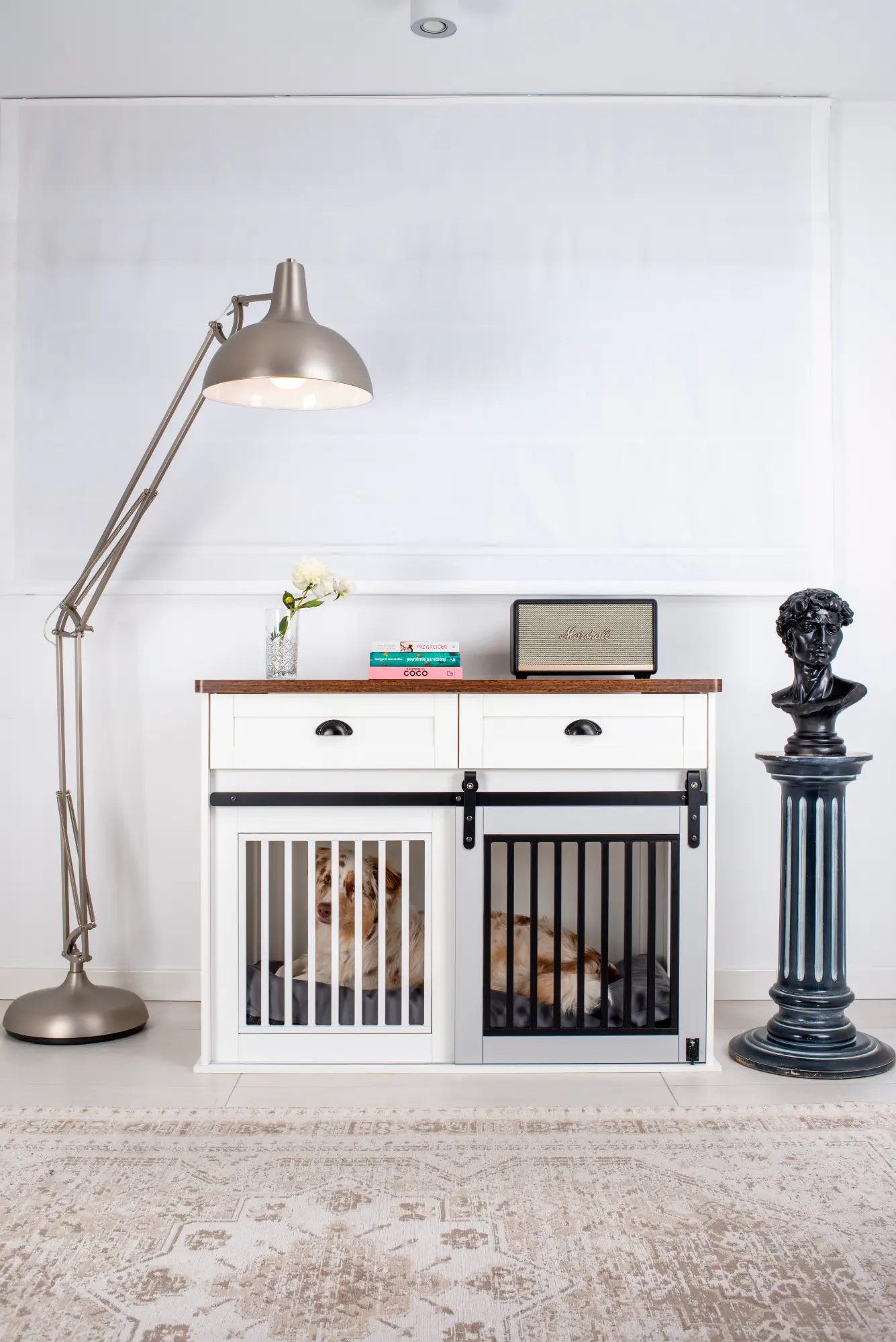 Idealnym rozwiązaniem dla psów potrzebujących własnej, przytulnej przestrzeni jest Dog-Sen – stylowa klatka kennelowa ukryta w eleganckiej komodzie. To połączenie funkcjonalności i estetyki, które doskonale wpisuje się w wystrój wnętrza, a jednocześnie zapewnia psu komfortowe i bezpieczne miejsce do odpoczynku.